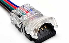 These connectors are super simple to use! Whether you need to make an end-to-and connection or need to add a gap between strips with wires, this connector has you covered. First off there are both connectors for single color and RGB tape light; Single colors have a two pin connection whereas RGB strips have four. There are 2 and 4 pin versions of the following LED strip connectors: