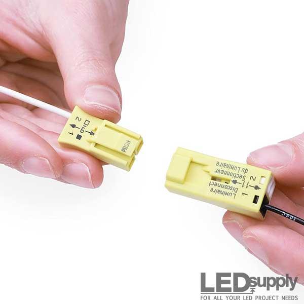 The WAGO 873 Series Luminaire Disconnect Connectors provide a safe, tool-free way to disconnect fixtures from power during ballast or driver replacement. These compact connectors use PUSH WIRE® spring pressure technology for fast and secure terminations of solid and stranded copper conductors. With touch-proof housings, UL 2459 and CSA 22.2 approvals, and a simple plug-and-socket mating system, these connectors allow electricians to service fixtures quickly while meeting modern safety codes.