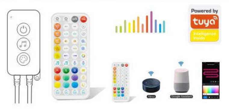 | Control: IC pixel control, remote (sold separate) or app | Waterproof Rating: IP65 (silicone-coated) |