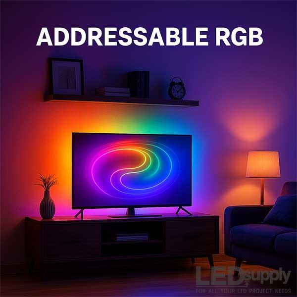 Bring dynamic, customizable lighting to any project with our IC Addressable RGB Waterproof LED Strip Light. Unlike standard RGB strips, this model features individually controllable pixel groups, allowing you to create flowing gradients, chasing patterns, music-reactive lighting, and fully custom effects - all from an easy-to-use app or the remote (sold separate). Designed for both professionals and DIY users, the strip offers bright 5050 RGB LEDs, flexible IP65-rated waterproofing, and reliable 12V operation for indoor or outdoor installations.