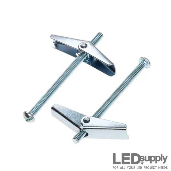 Each toggle bolt includes a 1/4-20 machine screw paired with a heavy-duty spring wing anchor. Once inserted through a pre-drilled hole, the wings expand behind the drywall to create a wide bearing surface that distributes weight evenly and prevents pull-through. The machine screw then tightens securely into place. Available in 3-inch and 4-inch screw lengths, this hardware accommodates varying drywall thicknesses and fixture mounting depths.